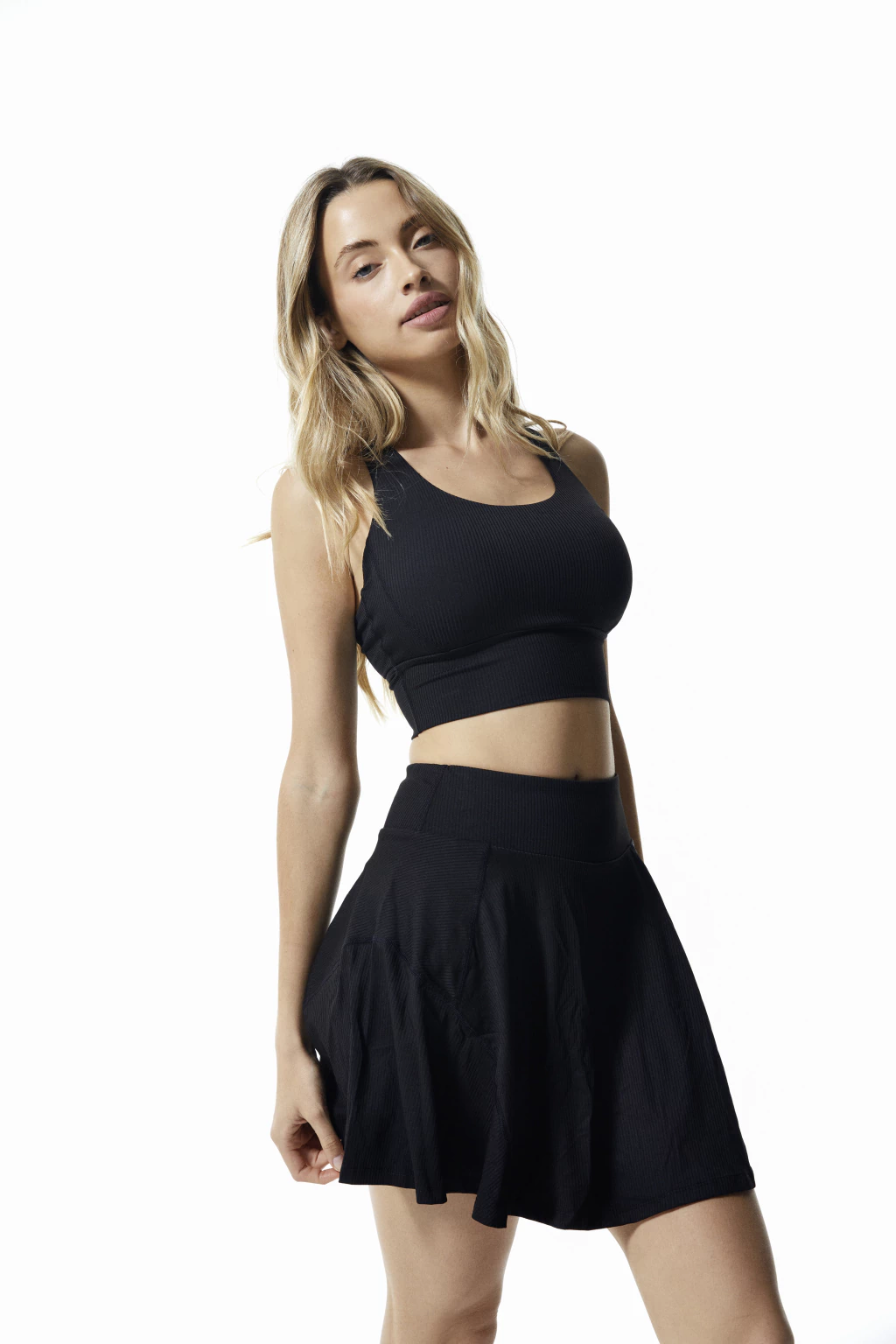 Descubre la fusión perfecta entre textura, comodidad y estilo con nuestro top deportivo de tejido acanalado. Su diseño sofisticado te hará sentir lista para el gimnasio o para un día casual, ofreciendo un soporte ideal para actividades de bajo a medio impacto.